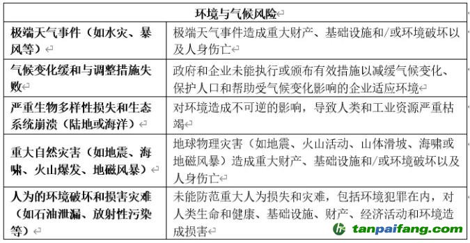 表 1 全球經(jīng)濟的主要環(huán)境與氣候風(fēng)險及內(nèi)容概述