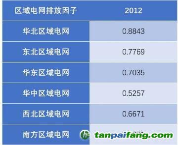 法人邊界中電網年平均供電排放因子按照《2012年中國區(qū)域電網平均二氧化碳排放因子》進行取值,如圖5所示。