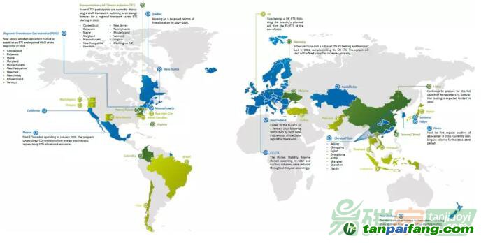 碳排放交易的主要進(jìn)展和趨勢。報(bào)告收錄了多個(gè)司法管轄區(qū)