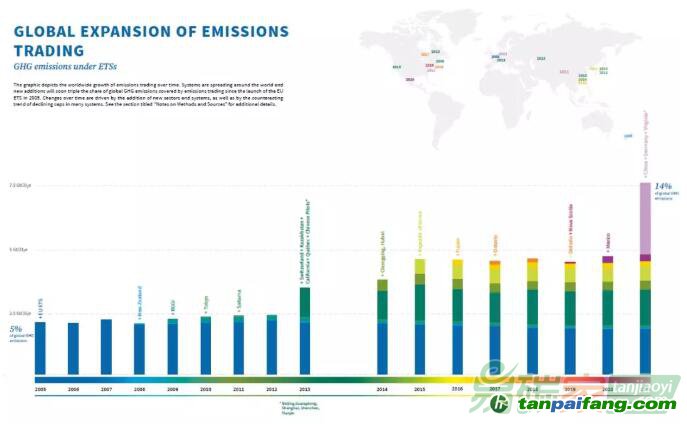 碳排放交易體系覆蓋的全球排放份額不斷增長