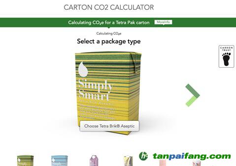 碳足跡計算使用其自己研發(fā)的一款在線碳計算器(Carton CO2eCalculator),該計算器能夠讓使用者較為輕松的比較不同包裝帶來的相關(guān)溫室氣體排放,從而使利樂的客戶更好地了解其包裝選擇帶來的氣候影響。