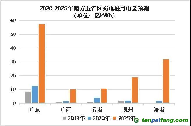充電服務(wù)業(yè)的用電量也將快速增長。按照規(guī)劃,2020年電動汽車推廣應(yīng)用城市電動汽車與公共充電樁比例不應(yīng)高于8:1,2025年低于5:1,城市核心區(qū)公共充電服務(wù)半徑不超過1千米。在通過合理手段刺激市場、調(diào)節(jié)供需,市場發(fā)展穩(wěn)定的情況下,“十四五”期末,南方五省區(qū)的電動汽車推廣量將達(dá)到454萬輛,復(fù)合增長率為33.7%。預(yù)計(jì)在車樁比5:1的情景下,到2025年,南方五省區(qū)充電樁用電總量達(dá)到130億千瓦時,對全社會用電量增長的貢獻(xiàn)率約為2.5%。