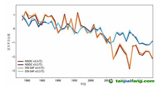 不同數(shù)據(jù)集給出的北極海冰面積