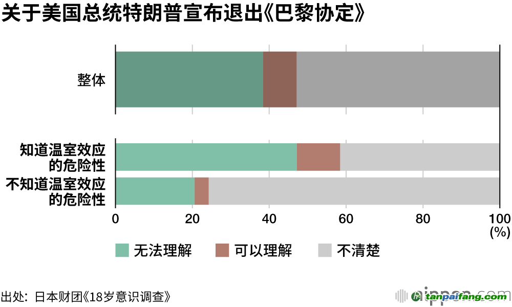 關(guān)于美國總統(tǒng)特朗普宣布退出《巴黎協(xié)定》一事,“不知道溫室效應(yīng)的危險(xiǎn)性”的受訪者中,有高達(dá)75.8%的人回答“不了解”。 內(nèi)-容-來-自;中_國_碳_0排放¥交-易=網(wǎng) t an pa i fa ng . c om