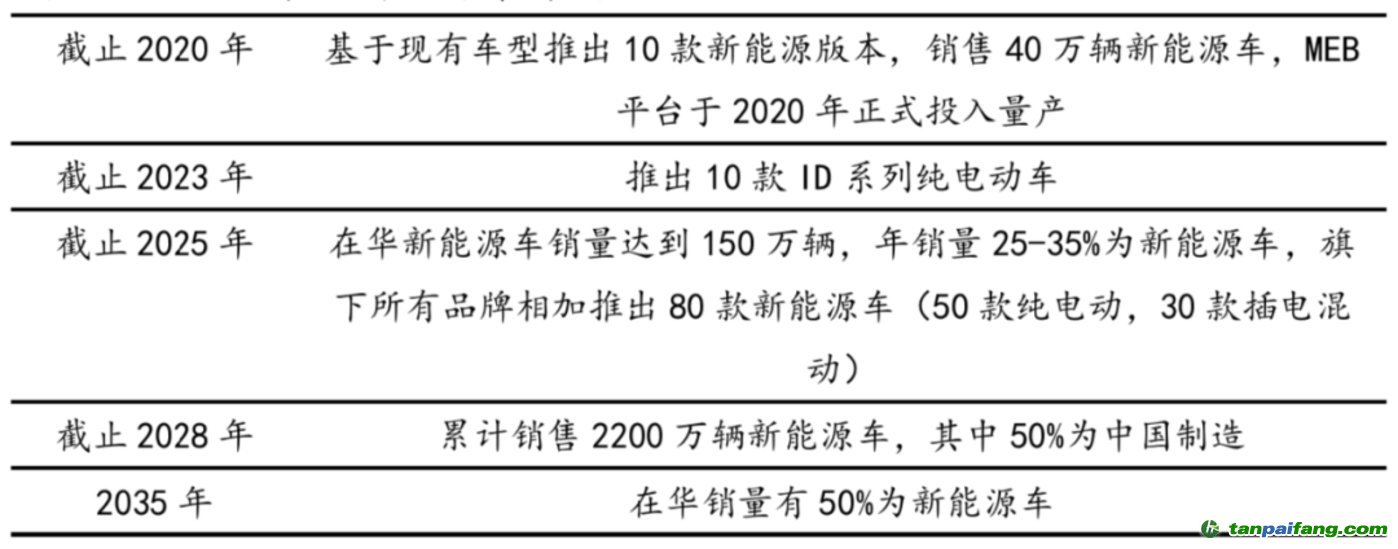大眾集團目前的初步目標是在2020年銷售40萬輛新能源車,遠期目標是在2035年達到銷量的50%以上為新能源車。
