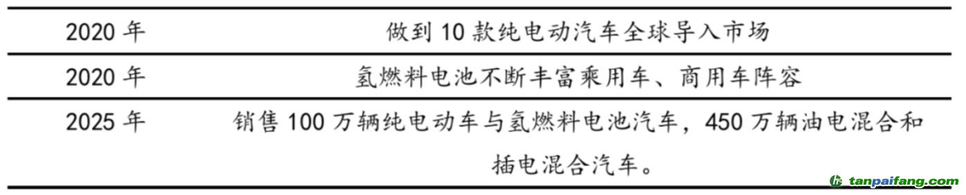 現代計劃到2020年推出25款電動化汽車,到2025年推出 38 款(13款油電混動汽車,9款插電混動汽車,14款純電動汽車,2 款氫燃料電池汽車)。 本`文內.容.來.自:中`國`碳`排*放*交*易^網 t a npai fan g.com