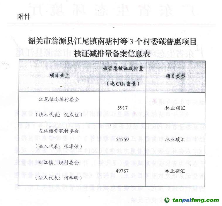 附件:韶關市翁源縣江尾鎮(zhèn)南塘村等3個村委碳普惠項目核證減排量備案信息表