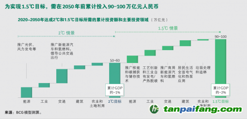 BCG測(cè)算了不同情景下,中國(guó)溫室氣體減排趨勢(shì)。在基準(zhǔn)情景下,截至2050年溫室氣體排放相較現(xiàn)狀將降幅10%-20%,距離達(dá)成《巴黎協(xié)定》的升溫控制以及中國(guó)承諾的碳中和目標(biāo)還有很大差距。BCG分析表明,即刻起貫徹1.5℃路徑是中國(guó)在2060年之前實(shí)現(xiàn)碳中和目標(biāo)的必由之路。中國(guó)應(yīng)力爭(zhēng)在2050年前實(shí)現(xiàn)75%-85%的溫室氣體減排。在這一過程中,中國(guó)需要在當(dāng)前計(jì)劃的基礎(chǔ)上推行更加積極的減碳舉措,并努力突破現(xiàn)行技術(shù)與社會(huì)認(rèn)知邊界。