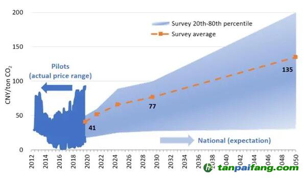 價格(平均)預(yù)計將從2020年的49元/噸穩(wěn)步上升,到2030年將達(dá)到93元/噸,并于本世紀(jì)中葉超過167元/噸??紤]到在調(diào)查開展之后中國做出了將實現(xiàn)碳中和的承諾,最新的