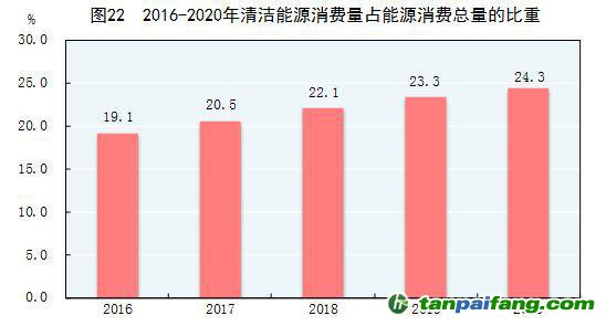 初步核算,全年能源消費(fèi)總量49.8億噸標(biāo)準(zhǔn)煤,比上年增長(zhǎng)2.2%。煤炭消費(fèi)量增長(zhǎng)0.6%,原油消費(fèi)量增長(zhǎng)3.3%,天然氣消費(fèi)量增長(zhǎng)7.2%,電力消費(fèi)量增長(zhǎng)3.1%。煤炭消費(fèi)量占能源消費(fèi)總量的56.8%,比上年下降0.9個(gè)百分點(diǎn);天然氣、水電、核電、風(fēng)電等