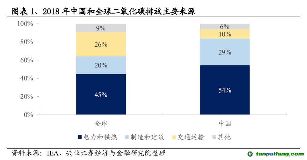 碳排放是目前被認(rèn)為導(dǎo)致全球變暖的主要原因之一。我國(guó)碳排放中占比最大的(54%)來(lái)源于電力和供熱部門(mén)在生產(chǎn)環(huán)節(jié)中化石燃料的燃燒。