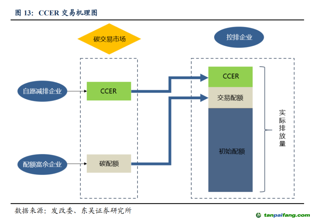第二類,作為補充,在配額市場之外引入自愿減排市場交易,即 CCER 交易。CCER 交易指控排企業(yè)向?qū)嵤?ldquo;碳抵消”活動的企業(yè)購買可用于抵消自身碳排的核證量。 本文@內(nèi)/容/來/自:中-國-碳^排-放-交易&*網(wǎng)-tan pai fang . com