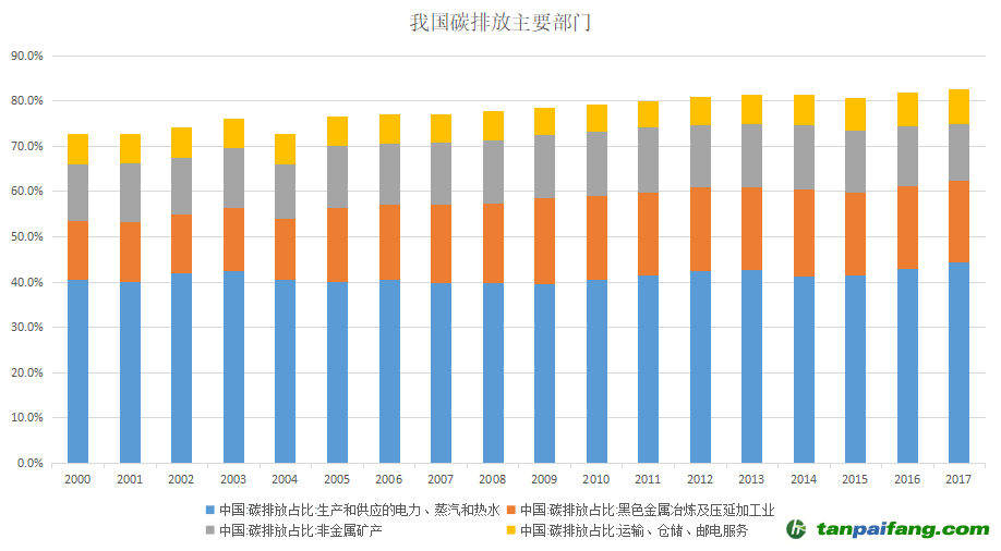 張仕元:首先碳排放本身大部分是由能源消費產(chǎn)生的,能源消費產(chǎn)生的碳占所有碳排放的85%,所以無論是機遇還是壓力,主要還集中在能源消費這個領(lǐng)域。其中,電力(包括供電供水)、黑色金屬、非金屬和運輸這四個行業(yè)基本上占到了中國碳排放的83%。“碳達峰”的目標下,這幾個行業(yè)的增長會受到抑制,感受到的壓力是最大的。 夲呅內(nèi)傛萊源亍:ф啯碳*排*放^鮫*易-網(wǎng) τā ńpāīfāńɡ.cōm