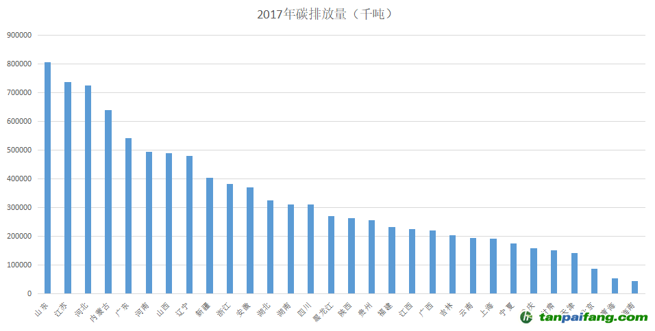 中國的經(jīng)濟結(jié)構(gòu)北重南輕,像能源、機械、冶金這些行業(yè),大部分集中在北方,所以帶來了大量能源的消耗和二氧化碳的排放。另一方面,淮河以北存在冬季供暖的壓力,這在南方是不存在的。所以碳排放排名第一的山東排放量是海南的近二十倍。