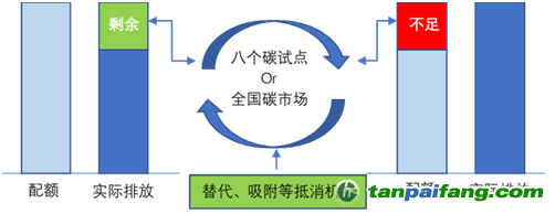 碳中和的重要手段。國家鼓勵企業(yè)事業(yè)單位實施可再生能源、林業(yè)、甲烷利用等項目實現(xiàn)溫室氣體的替代、吸附或減少,經(jīng)過核實并登記的溫室氣體削減可用于抵消一定比例的碳排放配額清繳。與此同時,《暫行條例》明晰了政府部門和審查機構(gòu)的職能和責(zé)任,為配額發(fā)放建立了可執(zhí)行的標(biāo)準(zhǔn)和獎懲措施。