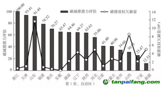 碳排放權(quán)欠缺省區(qū)減排潛力綜合評(píng)估結(jié)果