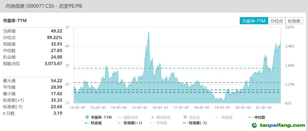 2019年來,“碳主題”指數(shù)估值開始新一輪擴張,但自2021年年初以來一直處于下跌區(qū)間,截止2021年10月21日,碳效率指數(shù)市盈率PE_TTM為11.17倍,估值水平處于自2012年以來的中位數(shù)水平之下,處于合理偏低區(qū)間內(nèi)。而中國低碳指數(shù)、內(nèi)地低碳指數(shù)自5月中旬開始回升,截至2021年10月21日,中國低碳、內(nèi)地低碳的市盈率PE_TTM分別為43.68倍、49.22倍,估值水平處于自2012年以來的平均估值+1倍標準差水平之上,已達到合理偏高區(qū)間。 禸嫆@唻洎:狆國湠棑倣茭昜蛧 τāńpāīfāńɡ.cōm