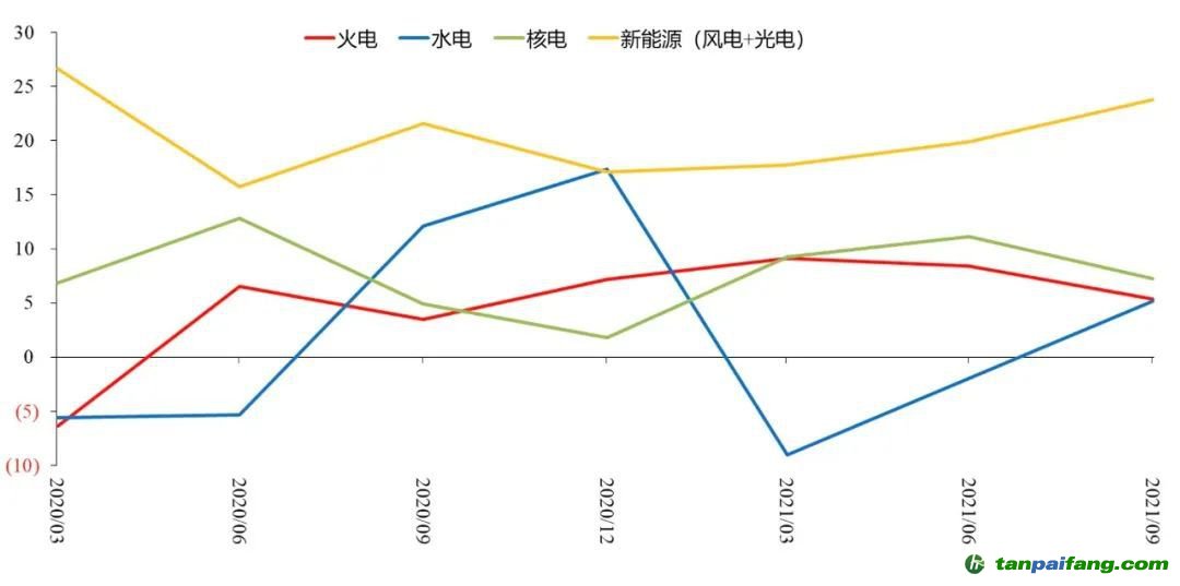圖1 2020年以來中國發(fā)電來源分類季度增速,%