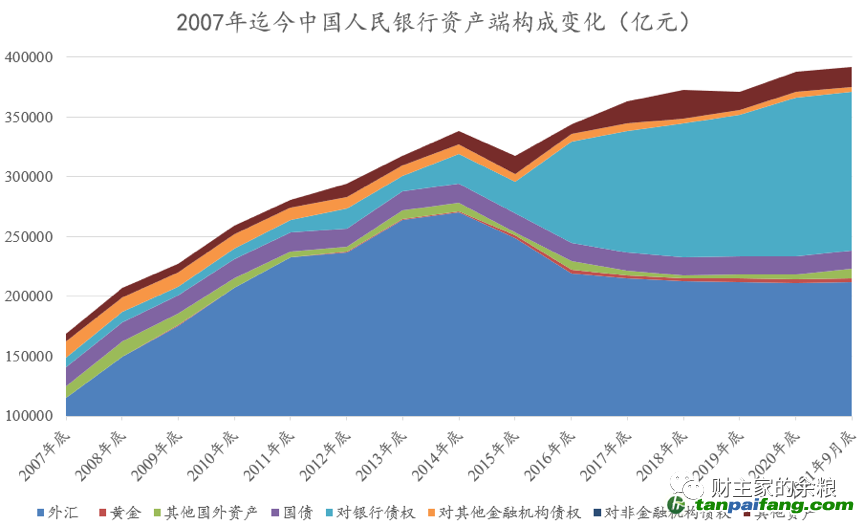 這個(gè)決定,意味著涉及綠色、三農(nóng)的垃圾債,也成為了人民幣基礎(chǔ)貨幣發(fā)行的來(lái)源。 再次放開(kāi)再貸款和再貼現(xiàn)規(guī)模,同時(shí)屢次擴(kuò)大抵押品范圍,讓中國(guó)的基礎(chǔ)貨幣發(fā)行渠道從80%以上的外匯,逐漸轉(zhuǎn)向國(guó)內(nèi)的各種貸款和債券,在央媽資產(chǎn)負(fù)債表上的體現(xiàn),就是“對(duì)銀行債權(quán)”的規(guī)模和占比,都持續(xù)擴(kuò)大(見(jiàn)下圖)。 本+文`內(nèi)/容/來(lái)/自:中-國(guó)-碳-排-放-網(wǎng)-tan pai fang . com
