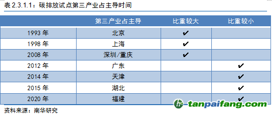 從產(chǎn)業(yè)結(jié)構(gòu)角度講,第二、第三產(chǎn)業(yè)是主要的碳排放貢獻(xiàn)者,尤其是第二產(chǎn)業(yè),涉及行業(yè)包括工業(yè)、交通運(yùn)輸?shù)?,其原料都是煤炭、石油等。因此,廣東、天津、湖北以及福建的單個(gè)產(chǎn)業(yè)帶來的碳排放量要高于其他碳交易試點(diǎn); 本*文@內(nèi)-容-來-自;中_國_碳^排-放*交-易^網(wǎng) t an pa i fa ng . c om