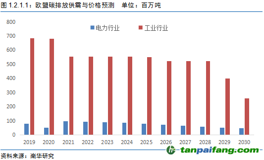 因此,綜合去看,2021~2030年,歐盟碳排放配額額度越來越緊,這也意味著每排放一噸二氧化碳成本越來越貴,碳排放配價(jià)格也將逐步提高。
