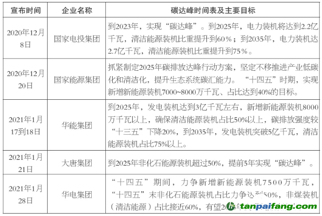 01、五大發(fā)電集團(tuán)明確碳達(dá)峰時(shí)間表及主要目標(biāo)