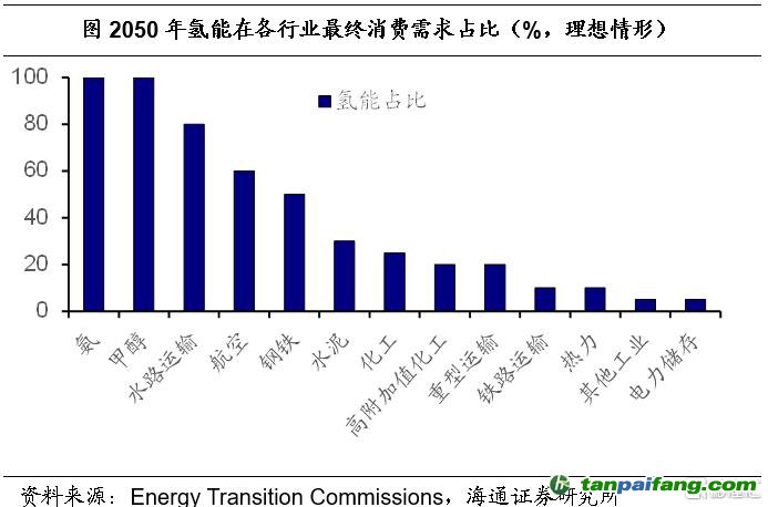 其中,在運(yùn)輸方面,氫氣主要用于制造燃料電池供電動汽車使用;而在工業(yè)領(lǐng)域,主要是作為工業(yè)或能源原料;在發(fā)電領(lǐng)域,氫是儲存可再生能源的主要選擇之一,氫和氨可用于燃?xì)廨啓C(jī)以提高電力系統(tǒng)靈活性;在熱力領(lǐng)域,氫氣可以混合到現(xiàn)有天然氣網(wǎng)絡(luò)中,未來也可以在氫氣鍋爐或燃料電池中直接使用。 本+文`內(nèi)/容/來/自:中-國-碳-排-放-網(wǎng)-tan pai fang . com