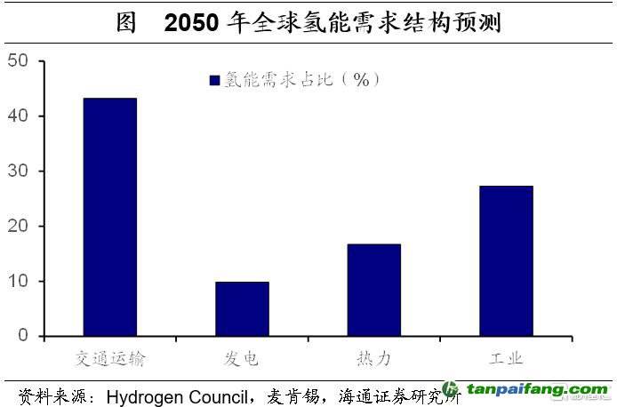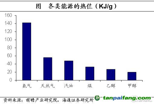從應(yīng)用端來看,氫能的優(yōu)勢在于高效、應(yīng)用廣泛。一是高效,相對于其他常見能源,氫氣燃燒的熱值更高,能達(dá)到142KJ/g,遠(yuǎn)高于其他能源,從而能夠提升效率。二是氫氣的應(yīng)用廣泛,既可以用作燃料電池發(fā)電,應(yīng)用于汽車,船舶和航空領(lǐng)域,也可以單獨(dú)作為燃料氣體或化工原料進(jìn)入生產(chǎn),同時還可以在天然氣管道中摻氫燃燒,應(yīng)用于建筑供暖等。目前在已經(jīng)規(guī)?;瘧?yīng)用的能源中,僅有石油能具備供熱、供電、交通燃料等多種功能,而氫氣無疑又是一種具有多種能源特性、適用多種場景的優(yōu)質(zhì)能源。 內(nèi)-容-來-自;中_國_碳_0排放¥交-易=網(wǎng) t an pa i fa ng . c om