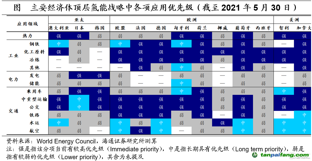 而在當(dāng)前全球各主要經(jīng)濟(jì)體提出的頂層氫能戰(zhàn)略中,最受關(guān)注的應(yīng)用領(lǐng)域是化工、冶煉、中重型運(yùn)輸和公交。這說明,這些是在當(dāng)前最具有緊迫性,也更具有可行性的技術(shù)應(yīng)用領(lǐng)域,也是未來我國在氫能綜合應(yīng)用中更應(yīng)關(guān)注和突破的方向。