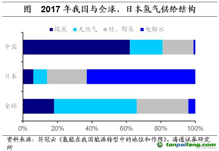 中國當(dāng)前煤化工行業(yè)發(fā)展較為成熟,2016年我國煤制氫占比高達(dá)62%,相比來看,全球水平氫氣供給中僅有18%為煤制氫,而在氫能產(chǎn)業(yè)最為發(fā)達(dá)的日本,其煤制氫的比重僅為6%,電解水制取的綠氫占比高達(dá)63%。在以煤炭作為制氫主要來源的情況下,碳排放水平相比直接使用煤炭所差無幾,無法達(dá)到低碳的要求,所以當(dāng)前我們面臨的一個難點(diǎn)是需要加大研發(fā)和應(yīng)用綠氫制造技術(shù)的比例。 內(nèi)/容/來/自:中-國/碳-排*放^交%易#網(wǎng)-tan p a i fang . com