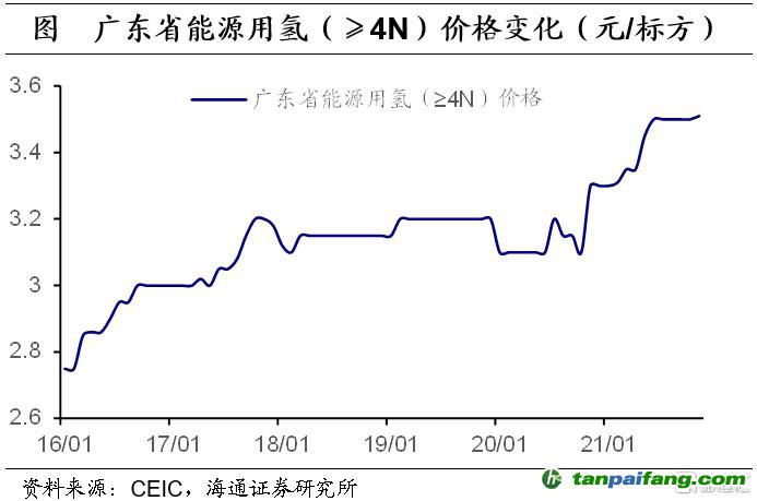 二是制取、儲運(yùn)技術(shù)薄弱,綠氫價格短期或?qū)⑤^高。從縱向比較上看,我國僅有廣東省公布了自2016年以來能源用氫的價格,可以看到近年來一直保持上漲的趨勢。從橫向比較上看,2021年上半年,德國氫氣價格為74.4元/公斤,美國為106.35元/公斤,日本為70元/公斤,而中國僅為60-70元/公斤。 本/文-內(nèi)/容/來/自:中-國-碳-排-放-網(wǎng)-tan pai fang . com