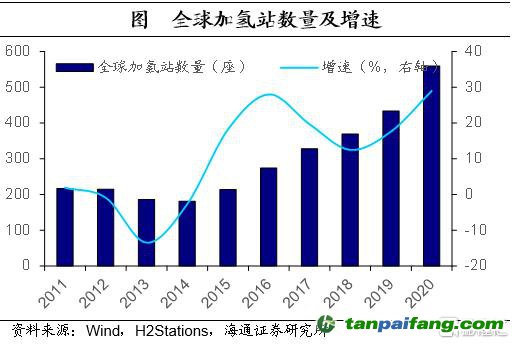 而氫燃料汽車的廣泛應(yīng)用,還需要基礎(chǔ)設(shè)施,如加氫站的配套建設(shè)。截至2020年底,全球共建成加氫站約544座,其中我國128座,占比約為23.5%。根據(jù)《中國氫能與燃料電池白皮書(2019)》預(yù)測,我國加氫站數(shù)量在2035年將達(dá)到1500座,在2050年將達(dá)到10000座以上,為實(shí)現(xiàn)這一目標(biāo),加氫站數(shù)量的年均增速達(dá)15.6%。而根據(jù)香橙研究會統(tǒng)計的情況,當(dāng)前我國加氫站建設(shè)的速度在全球領(lǐng)先,在建數(shù)量遠(yuǎn)超其他國家和地區(qū),可以預(yù)見在近期,我國將繼續(xù)推進(jìn)氫能基礎(chǔ)設(shè)施領(lǐng)域建設(shè)。 本*文`內(nèi)/容/來/自:中-國-碳^排-放“交|易^網(wǎng)-tan pai fang . c o m