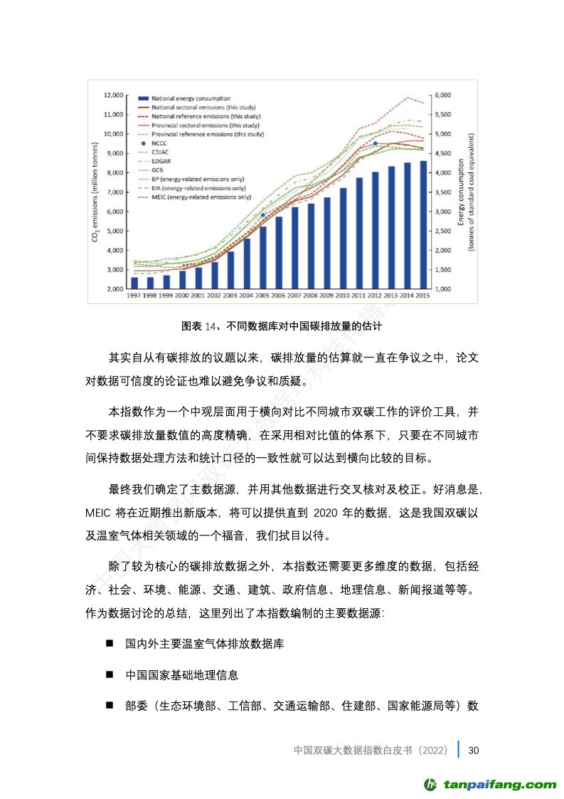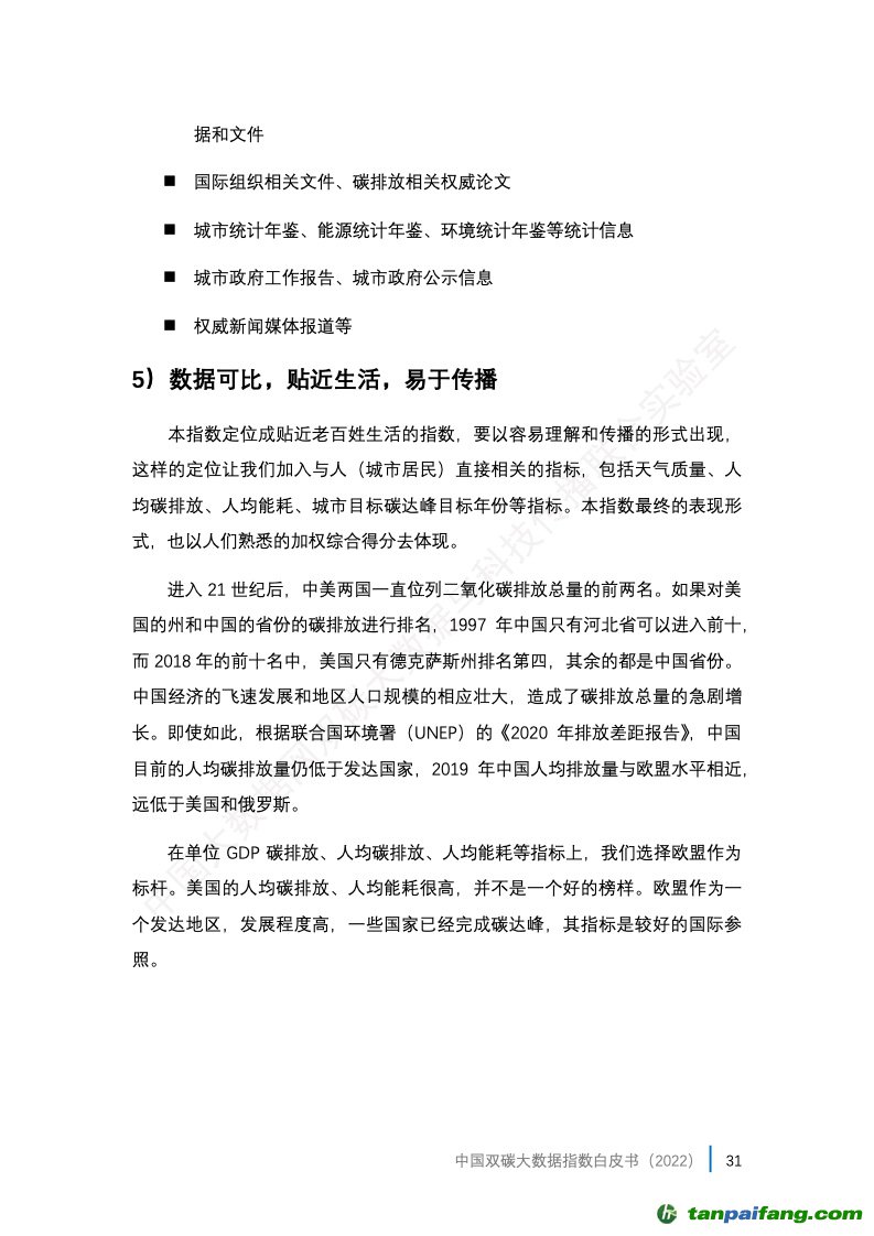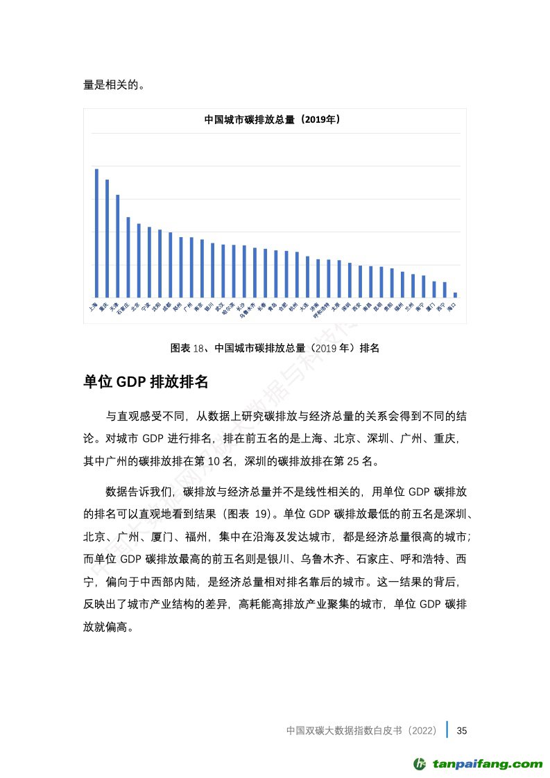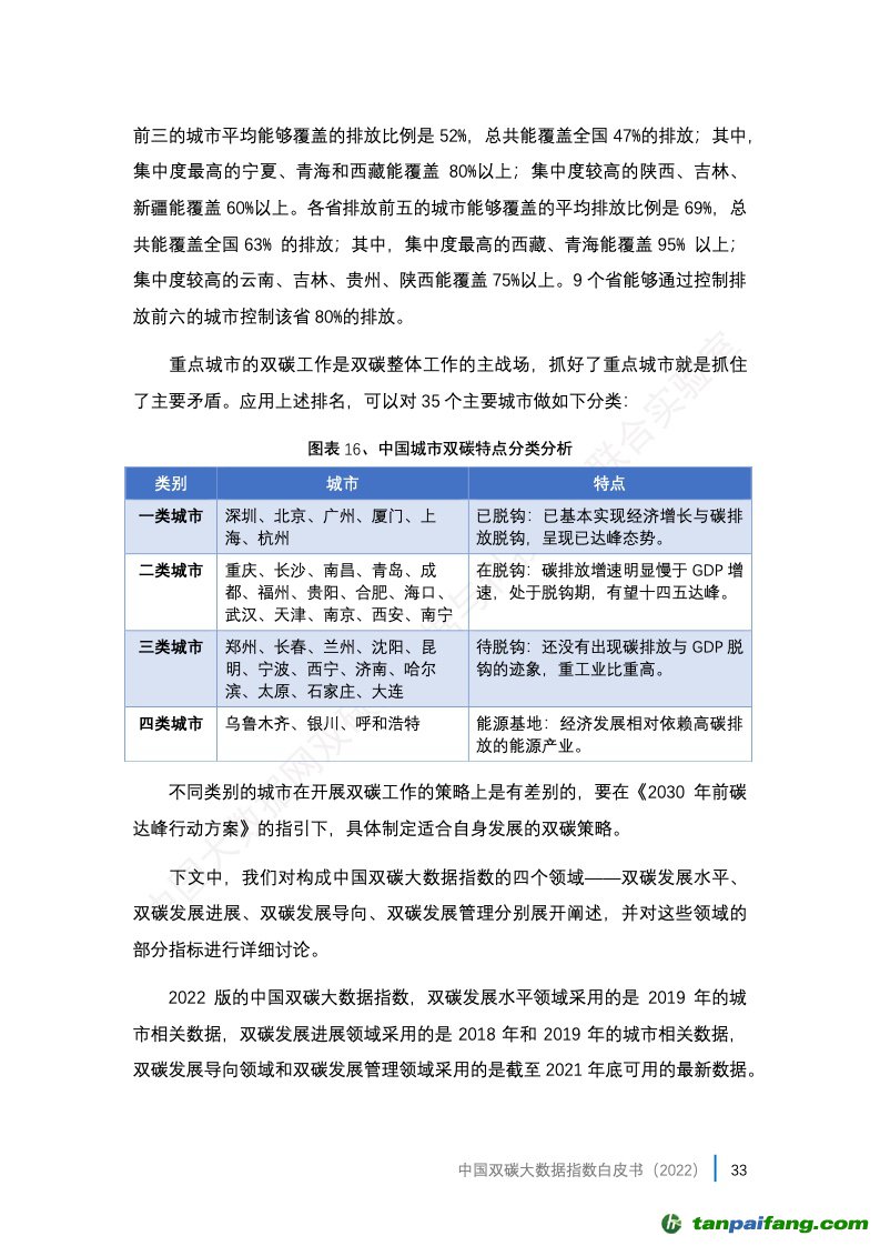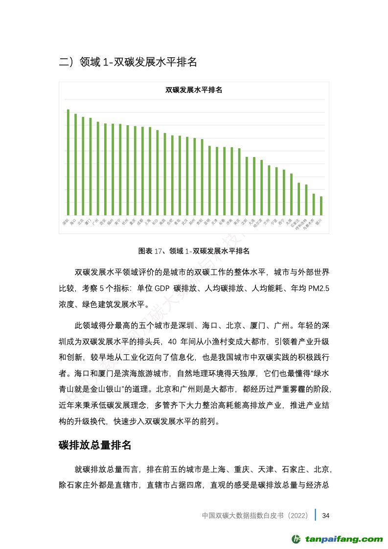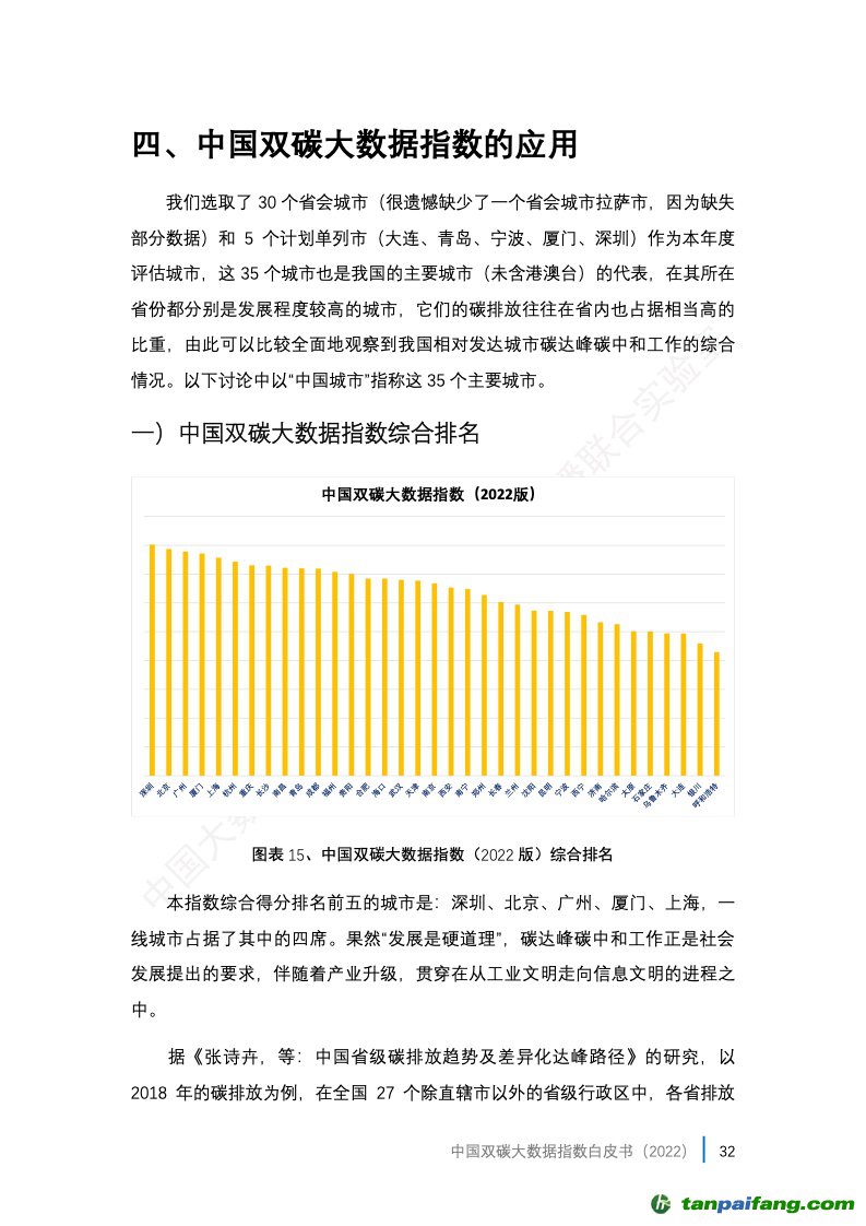 3、中國雙碳大數(shù)據(jù)指數(shù)的應(yīng)用。報告選取了30個省會城市(很遺憾缺少了一個省會城市拉薩市,因?yàn)槿笔?/font>部分?jǐn)?shù)據(jù))和 5個計劃單列市(大連、青島、寧波、廈門、深圳)作為本年度評估城市,這35個城市也是我國的主要城市(未含港澳臺)的代表,在其所在省份都分別是發(fā)展程度較高的城市,它們的碳排放往往在省內(nèi)也占據(jù)相當(dāng)高的比重,由此可以比較全面地觀察到我國相對發(fā)達(dá)城市碳達(dá)峰碳中和工作的綜合情況。 本+文+內(nèi).容.來.自:中`國`碳`排*放*交*易^網(wǎng) t a np ai fan g.com