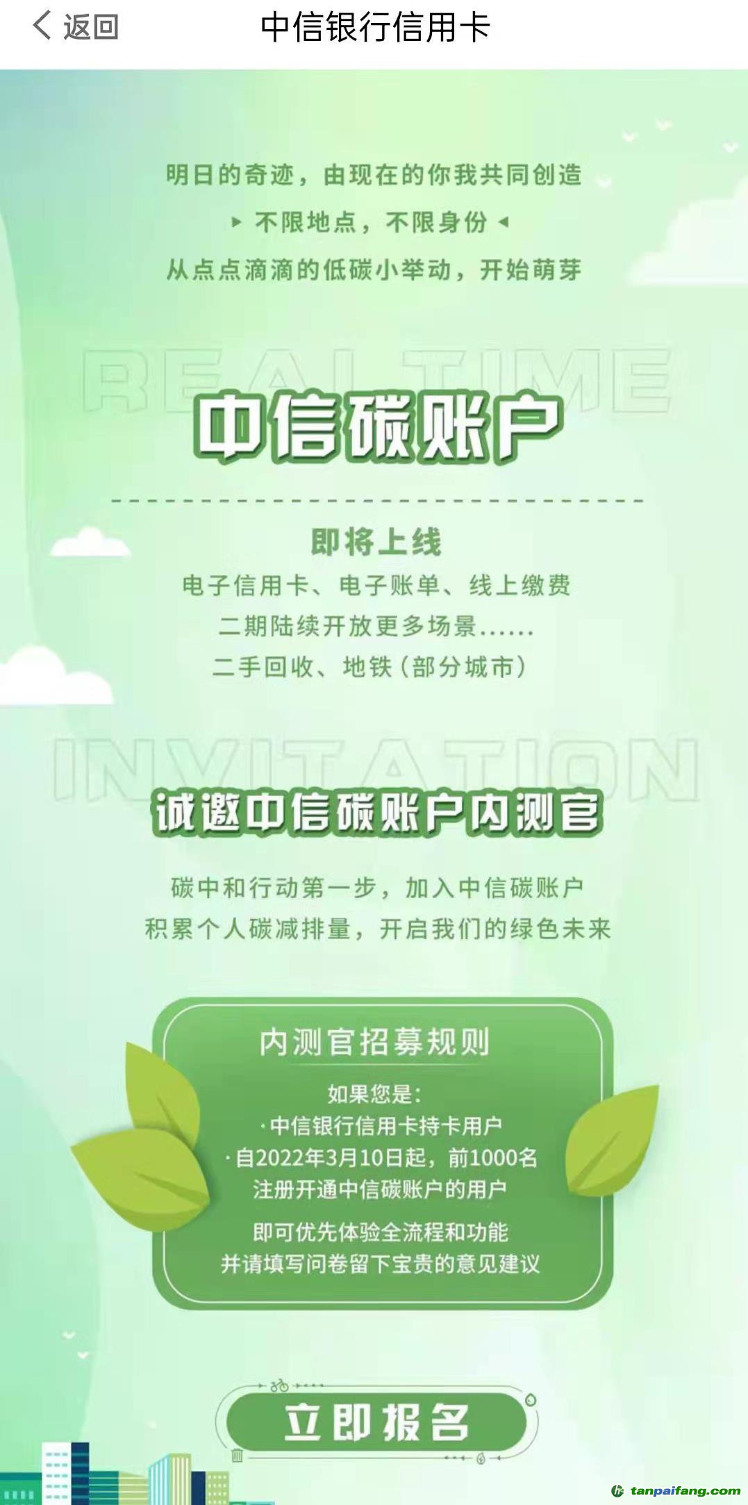 據(jù)中信銀行相關(guān)負責人介紹,目前內(nèi)測版已經(jīng)上線生活繳費網(wǎng)上辦理(含水費、電費、燃氣費等)、申請電子信用卡、開通電子賬單等低碳行為的碳減排量核算。公開版即將上線,還將包含