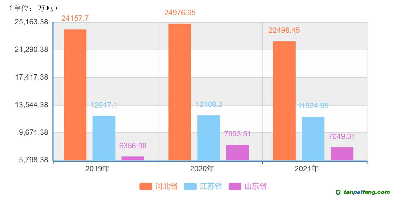 (粗鋼產(chǎn)量前三省份2019-2021年粗鋼產(chǎn)量)