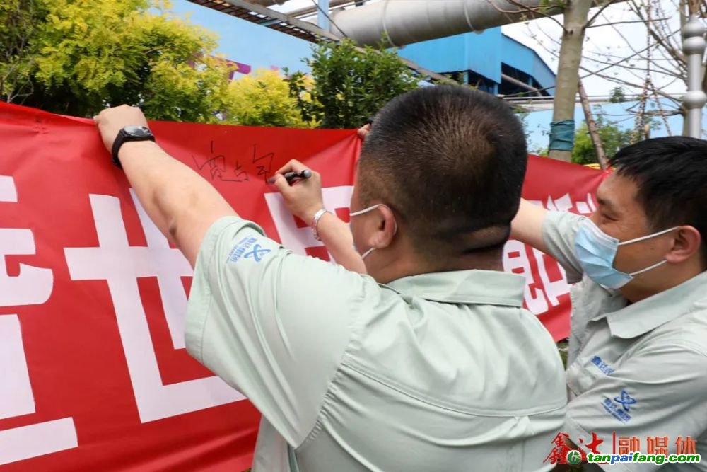 參與揭牌儀式的干部職工在活動(dòng)條幅上簽字 本文+內(nèi)-容-來(lái)-自;中^國(guó)_碳+排.放_(tái)交^易=網(wǎng) t a n pa ifa ng .c om