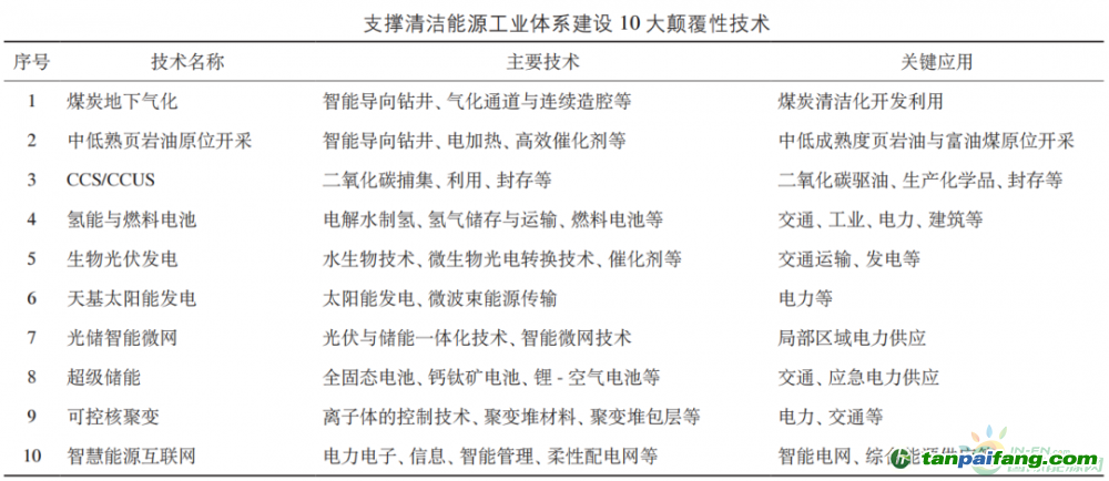 當(dāng)前,可著力布局研究 10 大顛覆性技術(shù),通過(guò)加快科技創(chuàng)新,有效助力清潔能源工業(yè)體系建設(shè)。 本文@內(nèi)/容/來(lái)/自:中-國(guó)-碳^排-放-交易&*網(wǎng)-tan pai fang . com