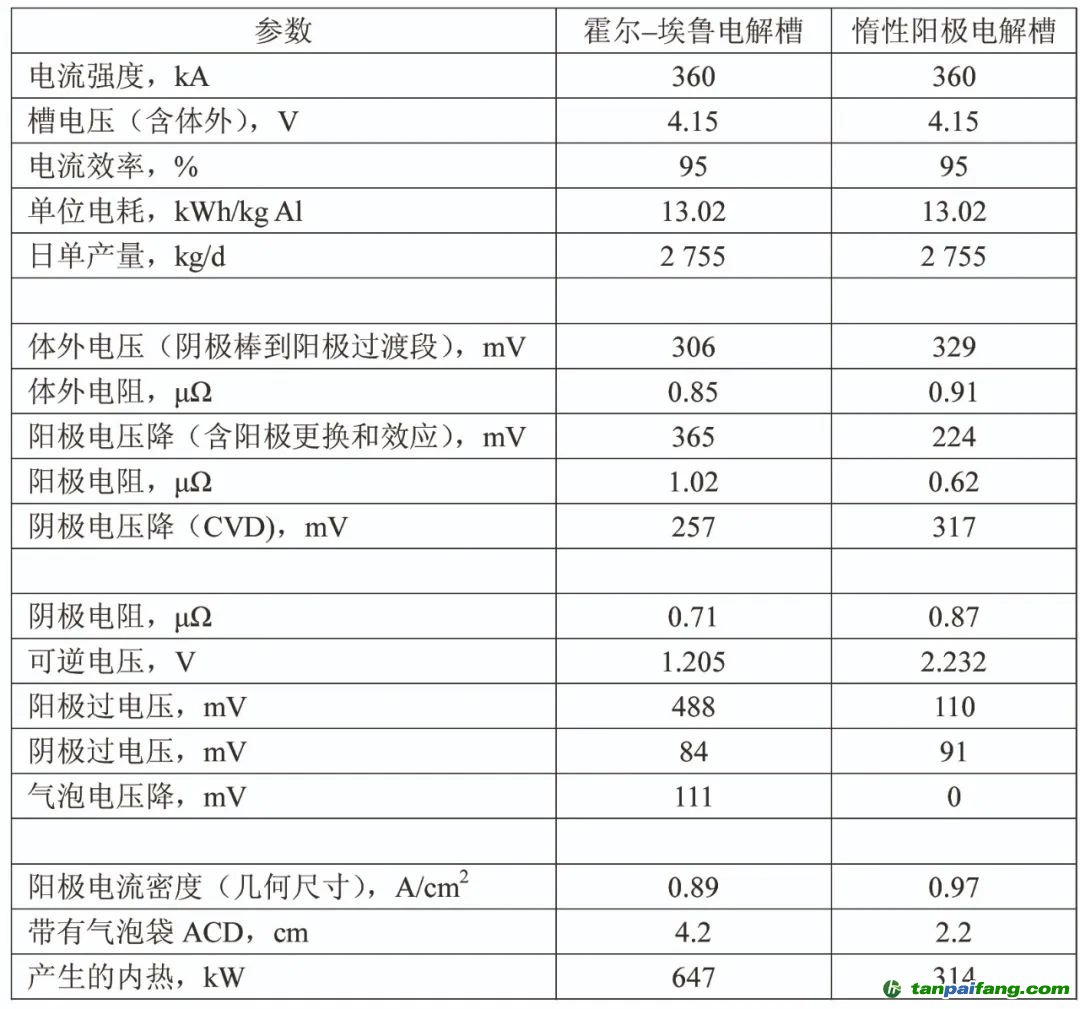 惰性陽極電解槽和傳統(tǒng)電解槽參數(shù)比較