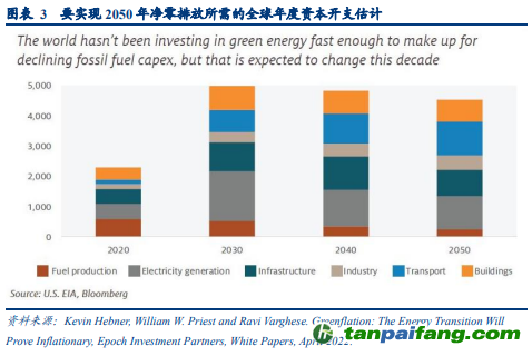 如果要實(shí)現(xiàn)凈零排放,到 2030 年,全球的年度能源資本支出需要增加一倍以上。低碳能源開(kāi)發(fā)的平均資本支出強(qiáng)度大約是碳?xì)浠衔锏膬杀丁5侥壳盀橹?,綠色投資的增長(zhǎng)速度還不夠快。