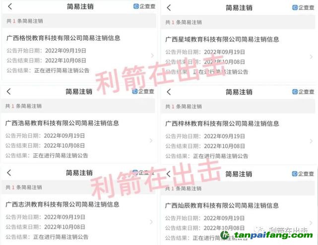 更讓人驚掉下巴的是許多公司正在注銷之中,今天是公示期最后一天,也就是說法人在明天就可以到有關(guān)部門簽字,公司就“合法”注銷了,至于這許許多多的公司是不是像“廣西超貴網(wǎng)絡(luò)科技有限責(zé)任公司”忽悠了不少人跑路?利箭也無法查證,至少查到這些公司都是有問題的!