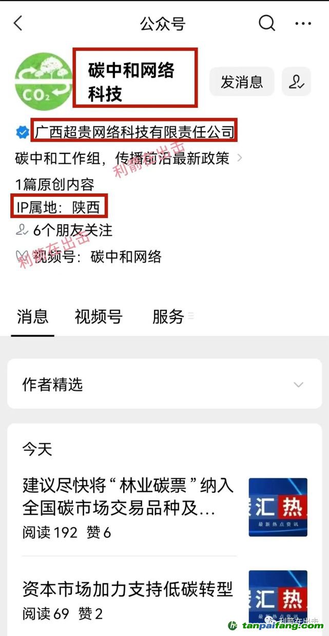 曾經(jīng)宣傳“碳中和”項(xiàng)目有個(gè)公眾號(hào)“碳中和網(wǎng)絡(luò)科技”,主體登記的是“廣西超貴網(wǎng)絡(luò)科技有限責(zé)任公司”。廣西的公司發(fā)文的IP地址在陜西,不知道有多少人懷疑過這公司沒有?該公眾號(hào)目前已經(jīng)被封號(hào)了。 內(nèi).容.來.自:中`國(guó)`碳#排*放*交*易^網(wǎng) t a np ai f an g.com