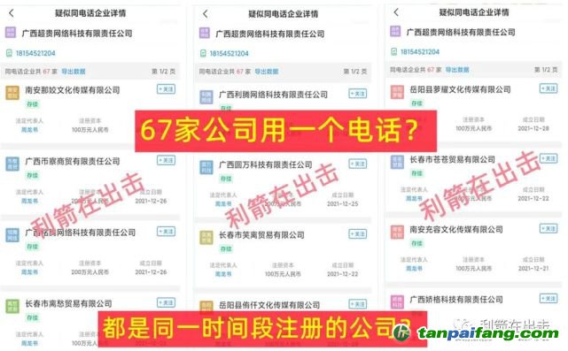 法人周龍書注冊(cè)的67家公司,都是使用了同一個(gè)電話,大家想想:如果是正常經(jīng)營(yíng)的公司,這電話能接得過來么??并且一天就注冊(cè)了不少的公司,大家覺得奇怪不?? 禸*嫆唻@洎:狆國(guó)湠棑倣茭昜蛧 τāńpāīfāńɡ.cōm