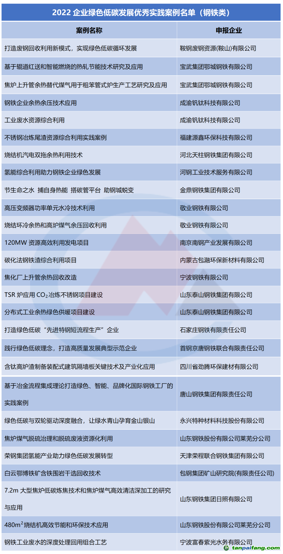 案例入圍,其中包括27個(gè)鋼鐵項(xiàng)目。整理如下——