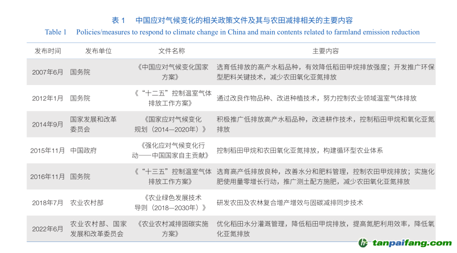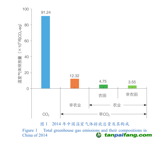 根據(jù)生態(tài)環(huán)境部發(fā)布的《中華人民共和國(guó)氣候變化第二次兩年更新報(bào)告》顯示(圖1),2014年中國(guó)溫室氣體排放總量為111.86×108噸CO2當(dāng)量(CO2-eq)。其中,非CO2溫室氣體排放為20.62×108噸CO2-eq,占溫室氣體排放總量的18.4%;農(nóng)業(yè)活動(dòng)非CO2溫室氣體(主要指CH4和N2O)排放為8.30×108噸CO2-eq,而農(nóng)田CH4和N2O直接排放總量為4.75×108噸CO2-eq,占全國(guó)農(nóng)業(yè)活動(dòng)溫室氣體排放量的57.3%,占全球農(nóng)田非CO2溫室氣體總排放量的26.8%。農(nóng)田是保障國(guó)家糧食安全和國(guó)計(jì)民生的基石,亦是長(zhǎng)期穩(wěn)定的溫室氣體排放源;隨著人口的增長(zhǎng),未來(lái)糧食增加與溫室氣體減排的矛盾將日益加劇。盡管農(nóng)田非CO2溫室氣體直接排放量目前僅占全國(guó)溫室氣體排放總量的4.3%(圖1),但隨著我國(guó)2030年碳達(dá)峰后,化石能源逐步被清潔能源所替代,CO2排放量逐步減少,未來(lái)農(nóng)田直接排放的CH4和N2O占溫室氣體總量的比例將會(huì)越來(lái)越大。不難預(yù)見(jiàn),我國(guó)農(nóng)田非CO2溫室氣體減排的重要性將日漸凸顯,其減排工作事關(guān)我國(guó)“雙碳”目標(biāo)是否能夠順利實(shí)現(xiàn),刻不容緩。 禸嫆@唻洎:狆國(guó)湠棑倣茭昜蛧 τāńpāīfāńɡ.cōm