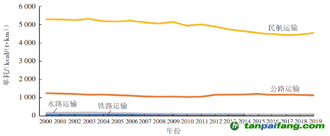 圖5 日本不同貨運(yùn)方式單位能耗變化情況(2000-2019年) 本*文@內(nèi)-容-來-自;中_國_碳^排-放*交-易^網(wǎng) t an pa i fa ng . c om