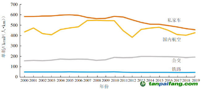圖4 日本不同客運(yùn)方式單位能耗變化情況(2000-2019年) 禸嫆@唻洎:狆國湠棑倣茭昜蛧 τāńpāīfāńɡ.cōm