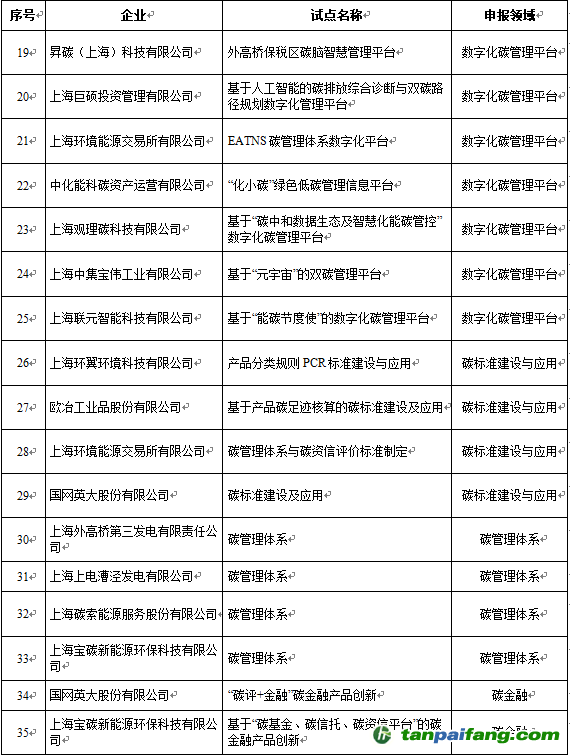 碳管理試點名單》正式出爐,35項上海市工業(yè)通信業(yè)
