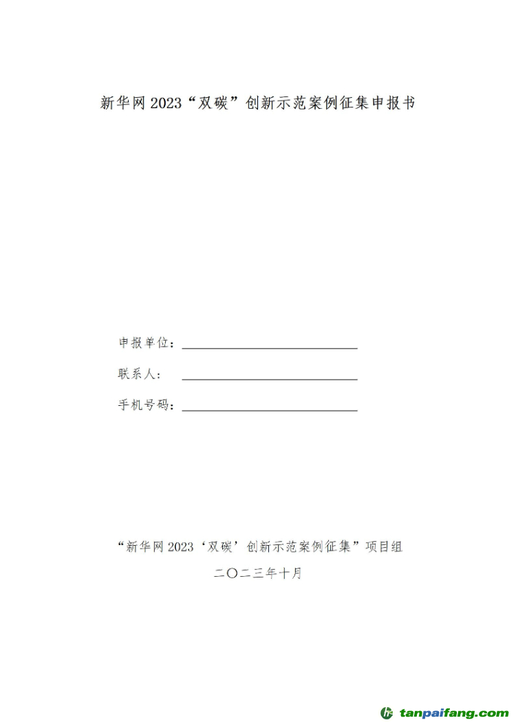 附件一:新華網(wǎng)2023“雙碳”創(chuàng)新示范案例征集申報(bào)書 本+文內(nèi).容.來(lái).自:中`國(guó)`碳`排*放*交*易^網(wǎng) ta np ai fan g.com