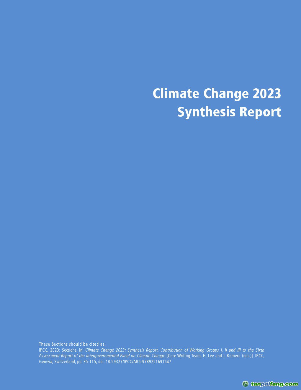 聯(lián)合國政府間氣候變化專門委員會(huì)發(fā)布了第六次評(píng)估報(bào)告“2023年氣候變化綜合報(bào)告”,基于2014年IPCC第五次評(píng)估報(bào)告發(fā)表以來同行評(píng)議的科學(xué)、技術(shù)和社會(huì)經(jīng)濟(jì)文獻(xiàn),總結(jié)了氣候變化、其廣泛影響和風(fēng)險(xiǎn)以及減緩和適應(yīng)氣候變化的知識(shí)狀況。