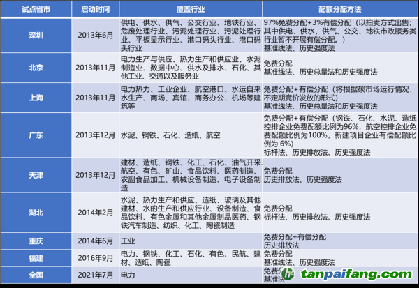 北京、天津、上海、重慶、廣東、湖北以及深圳七個(gè)地區(qū)作為試驗(yàn)點(diǎn),允許這些地方各自設(shè)立自己的碳排放交易
